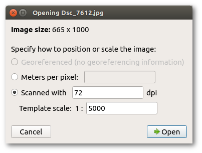- Meters per pixel: this is primarily useful for base maps from a digital source, where you may know this value directly. Alternatively you can also calculate it yourself: if your fieldwork image covers 500m width on the ground and the image is 1200 pixels wide then the scale will be 500 / 1200 = 0.625 meters per pixel. (Take care that the number of meters corresponds exactly to the width of the image file.)
